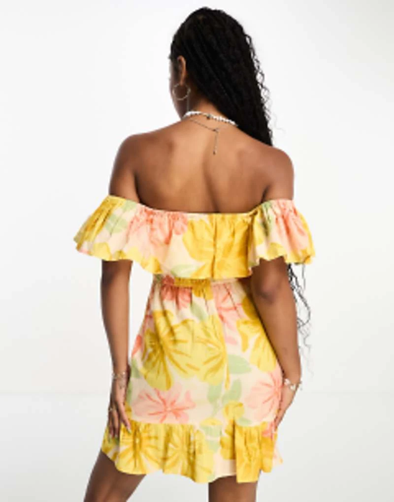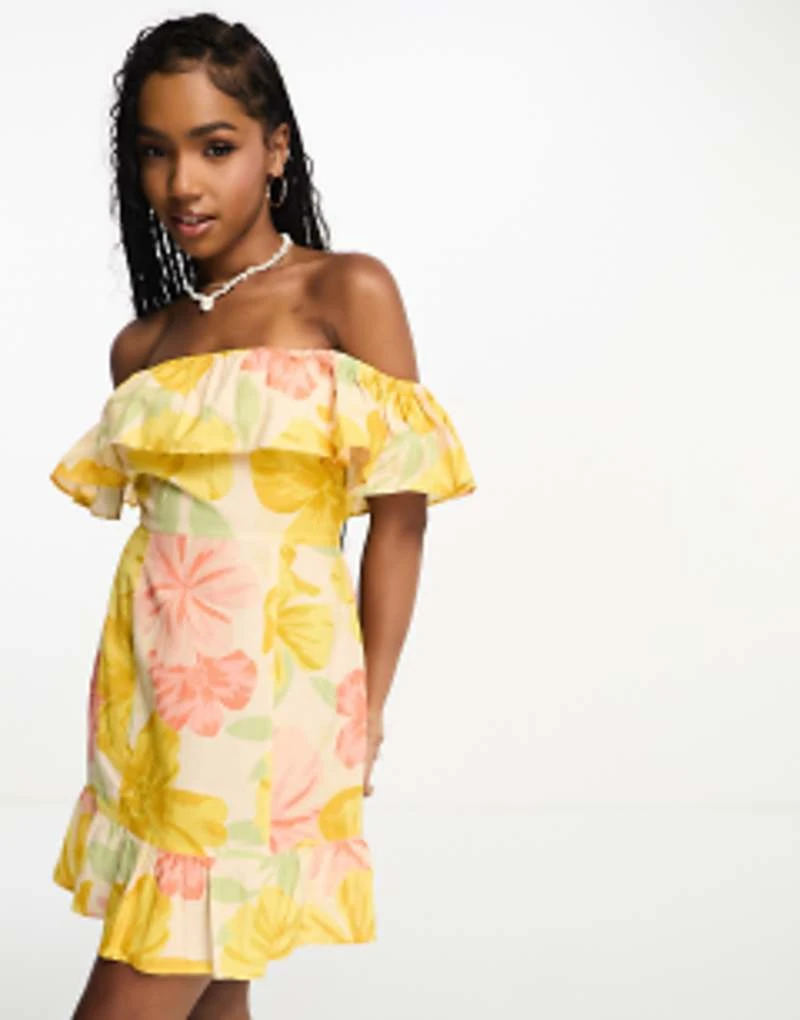 ASOS DESIGN Multi Flutter Sleeve Ruffle Midaxi Dress With Button Detail In Lemon Floral Print