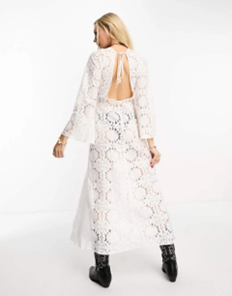 Miss Selfridge Festival Lace Sheer Ring Detail Maxi Dress In Ivory
