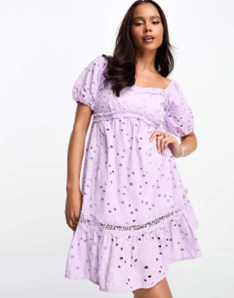 Miss Selfridge Occasion Broderie Frill Hem Mini Dress In Lilac