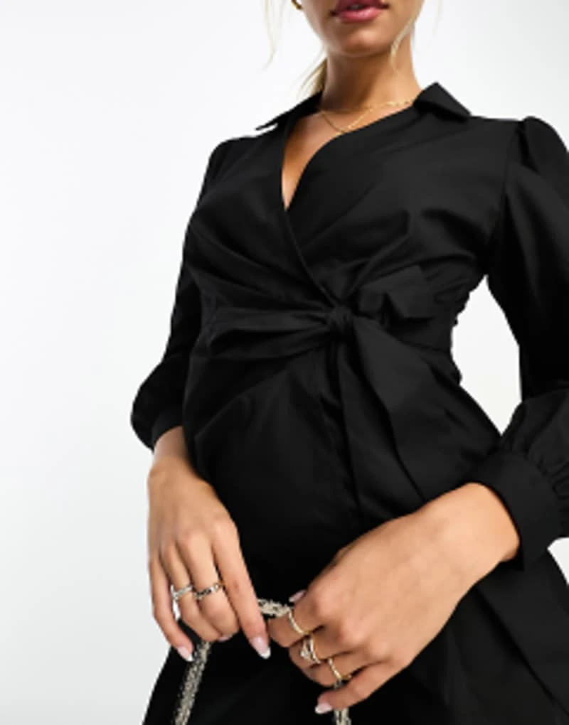 ASOS DESIGN Long Sleeve Mini Smock Dress With Buttons In Black