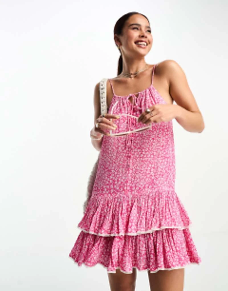 ASOS DESIGN Flutter Sleeve Mini Tea Dress With Buttons In Khaki