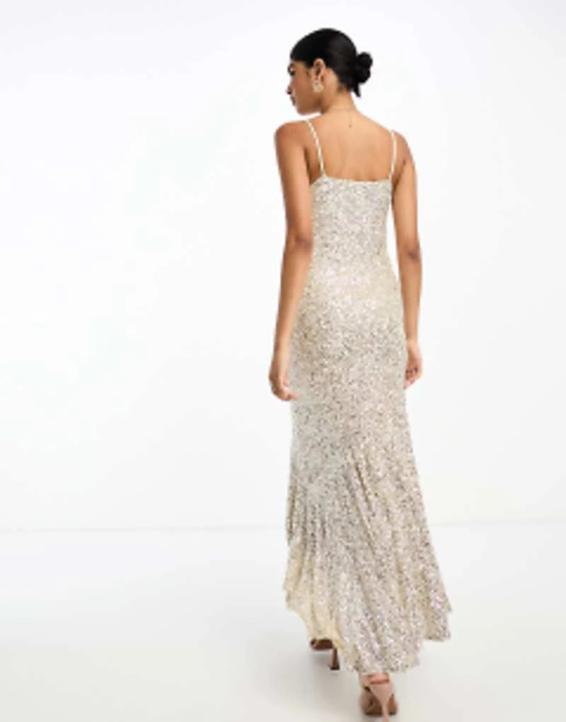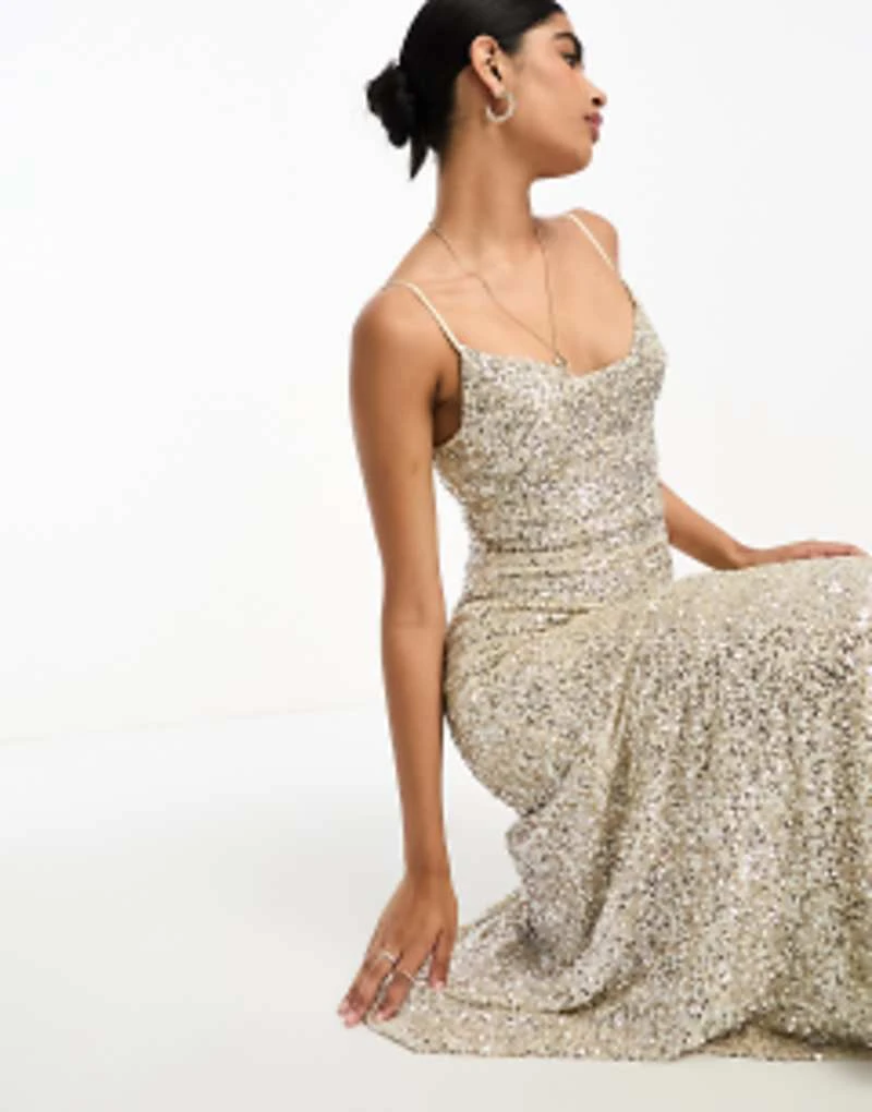 Never Fully Dressed Bridal Sequin Cowl Neck Midaxi Dress In Champagne