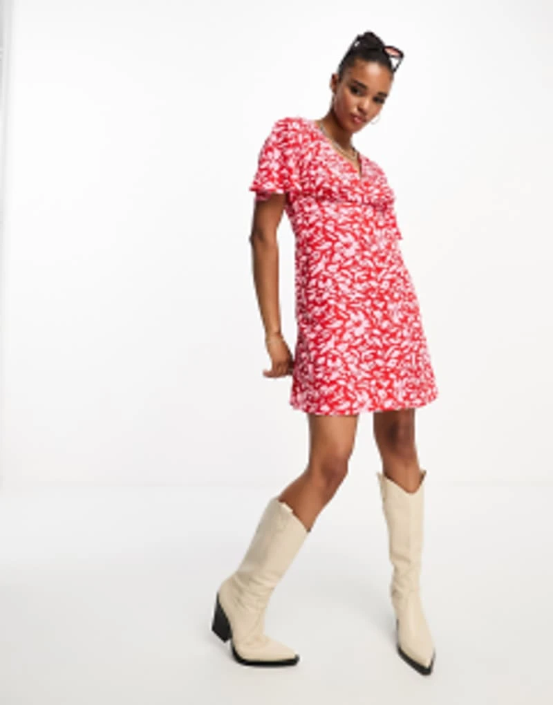 ASOS DESIGN Flutter Sleeve Mini Tea Dress With Buttons In Khaki