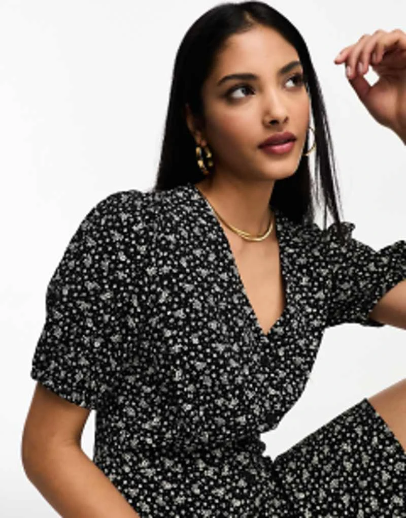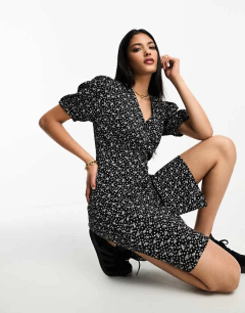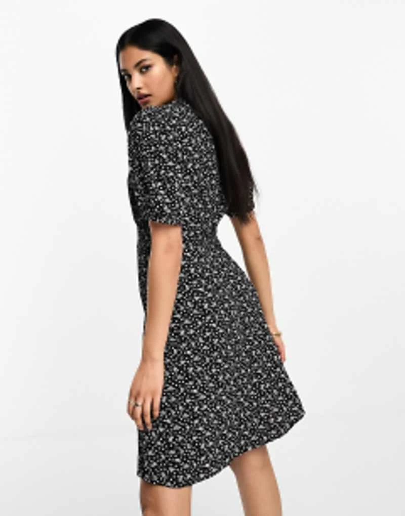 Miss Selfridge Strappy Button Through Rara Mini Dress In Pink Ditsy