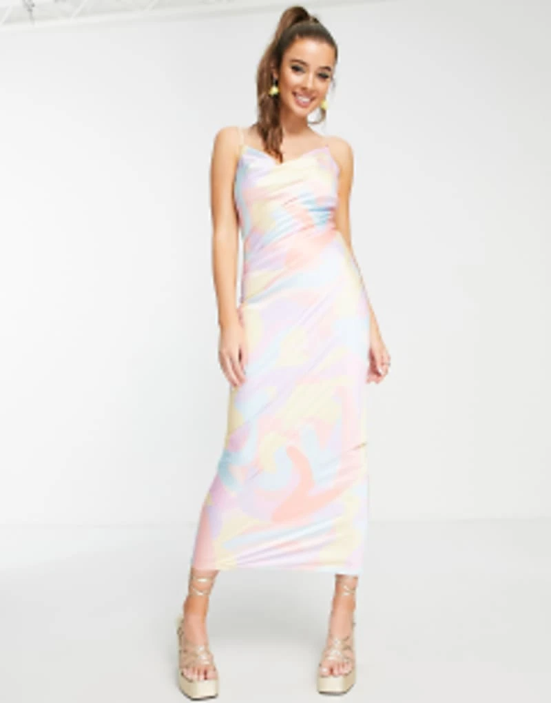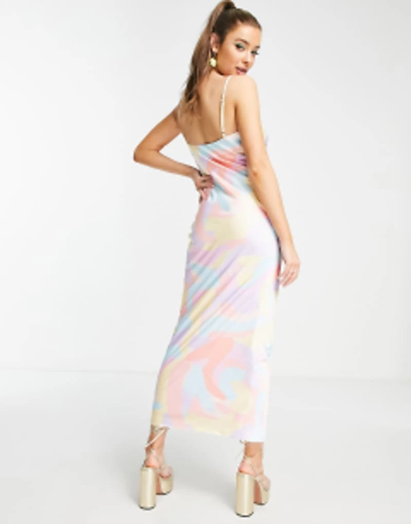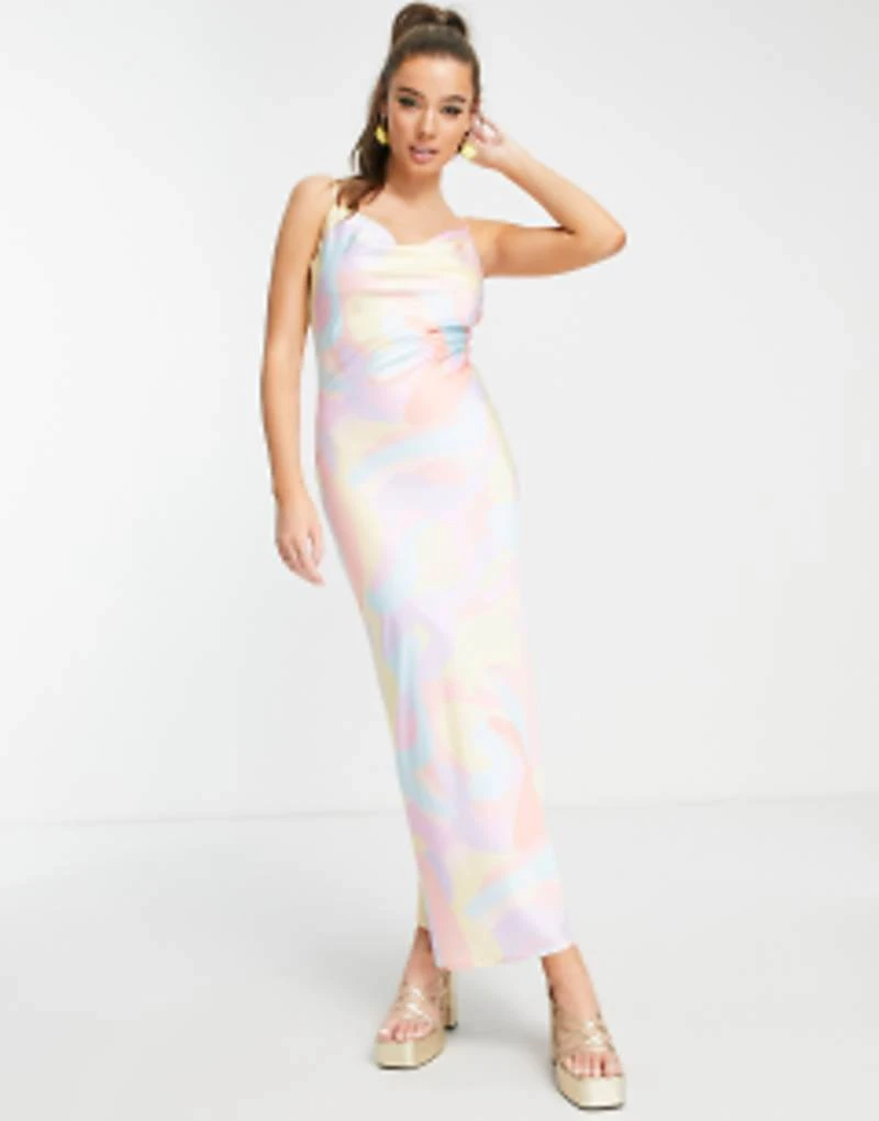 Peppermayo Cowl Front Maxi Dress In Pastel Wave Print