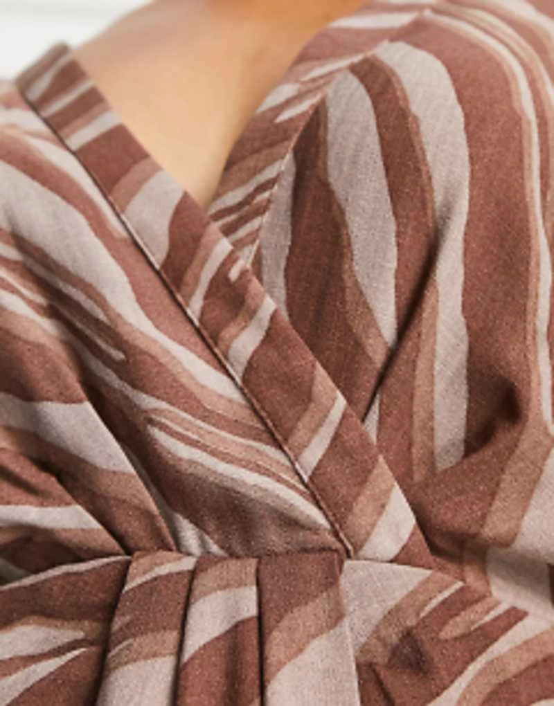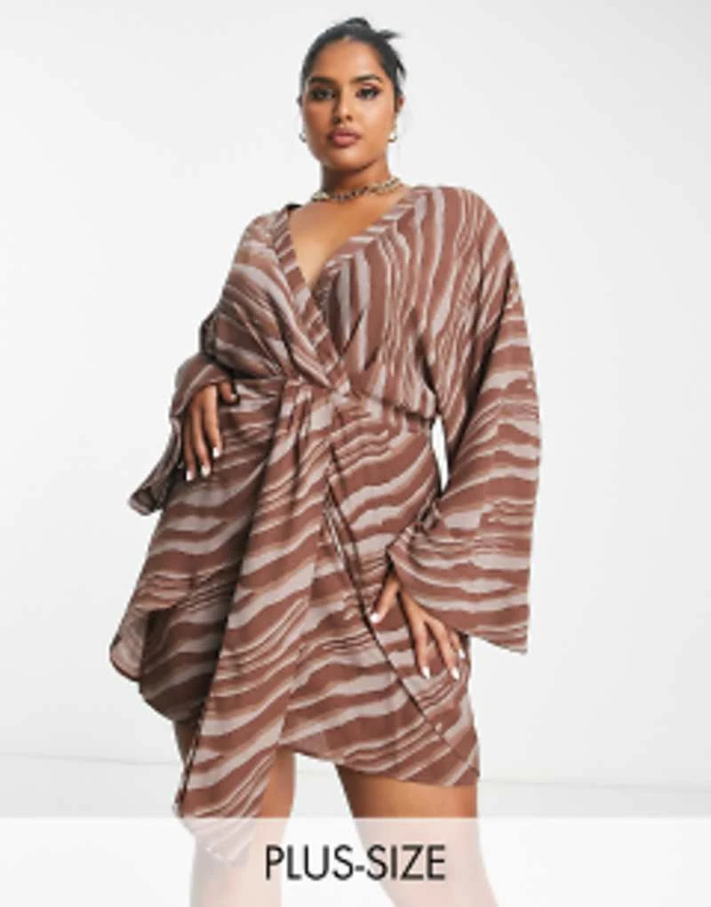 Pretty Lavish Curve Knot Front Satin Mini Dress In Brown Stripe
