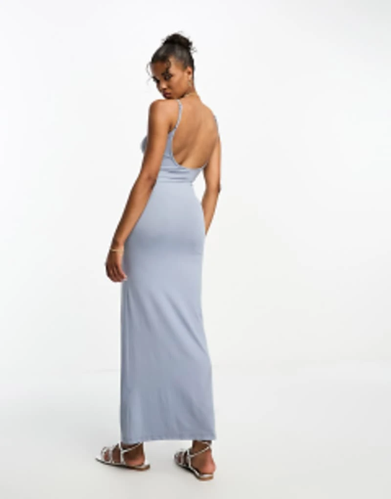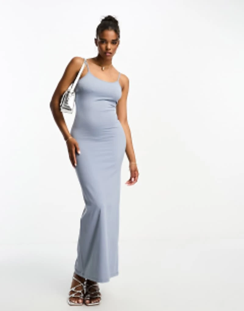 PULL & BEAR Pull&Bear Strappy Soft Shaping Maxi Dress In Blue Grey
