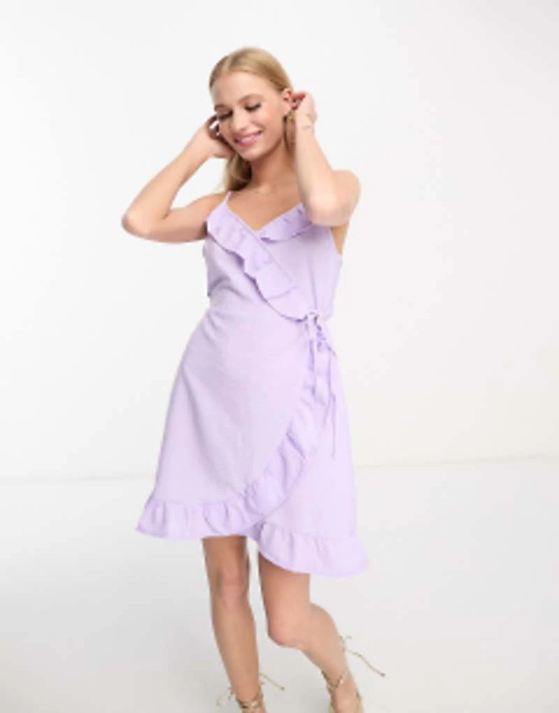 River Island Textured Frill Wrap Mini Dress In Lilac