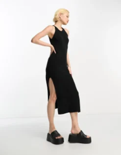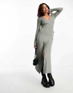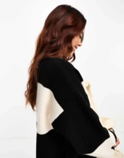 ASOS DESIGN Knitted Maxi Dress With Twist Front In Colour Block In Blue & Lime