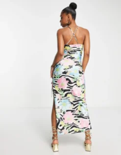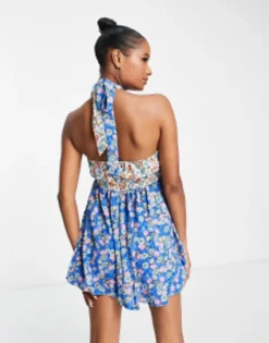 Miss Selfridge Strappy Button Through Rara Mini Dress In Pink Ditsy