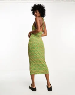 Only Exclusive Racer Neck Contrast Binding Maxi Dress In White & Green