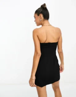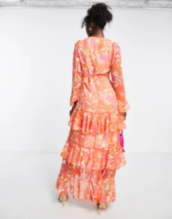 Stradivarius Ruffle Bandeau Mini Dress With Floral Print In Orange