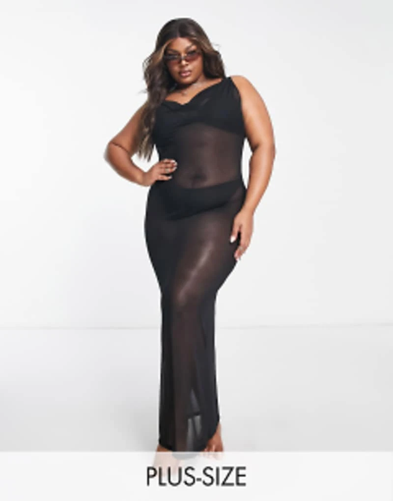 South Beach Curve Exclusive Beach Mesh Summer Maxi Dress In Black