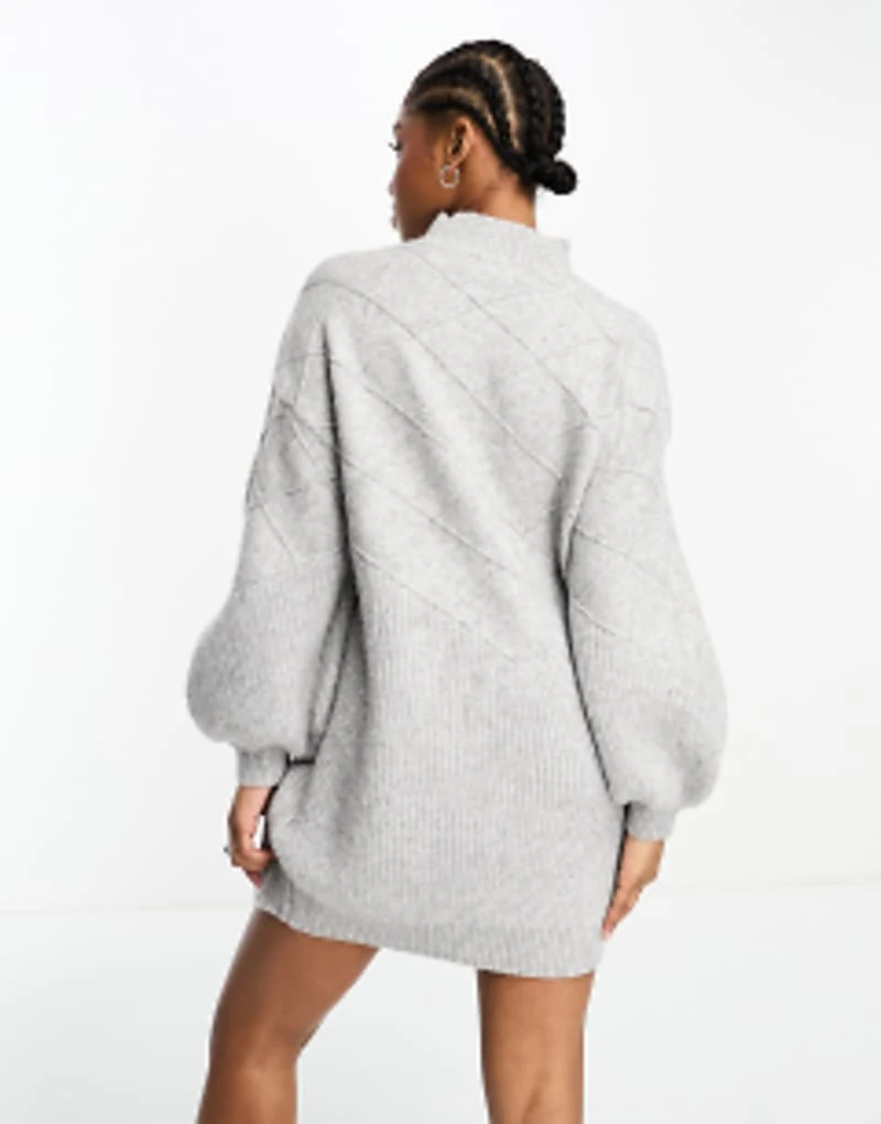 The Frolic Pointelle Detail Balloon Sleeve Jumper Dress In Soft Grey