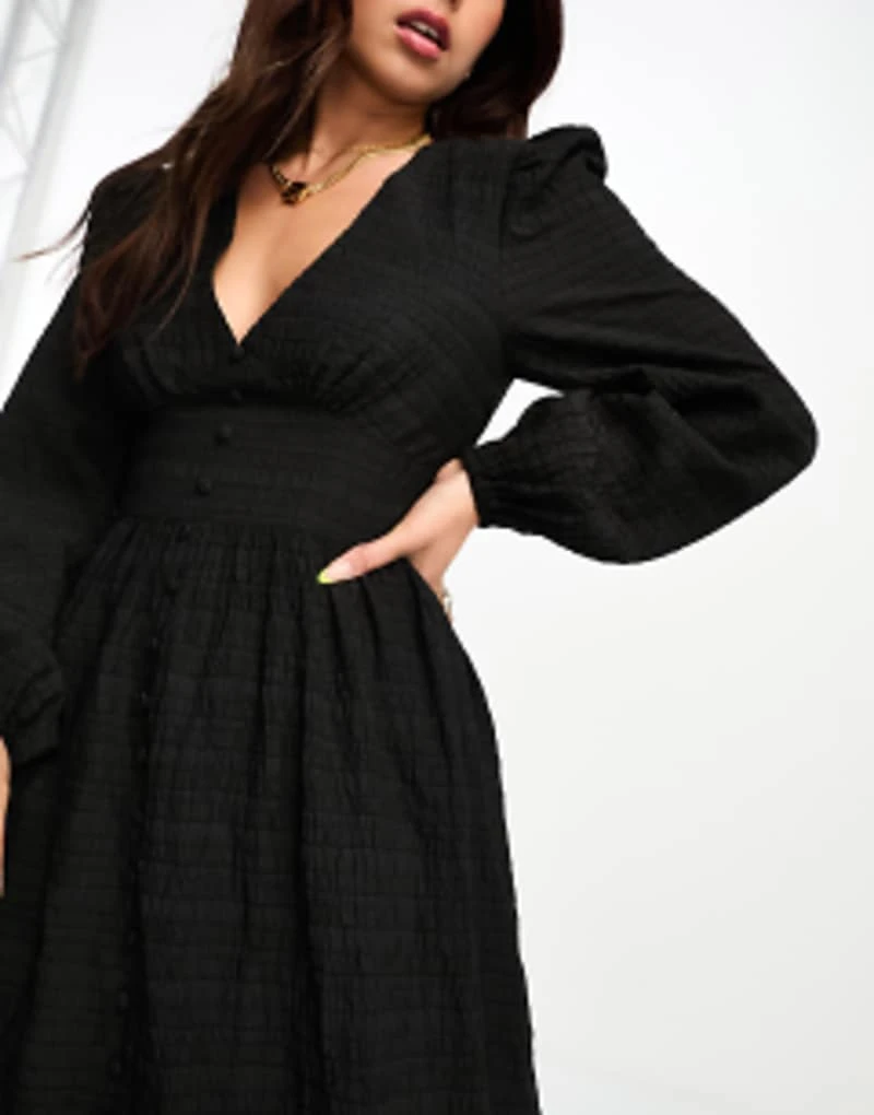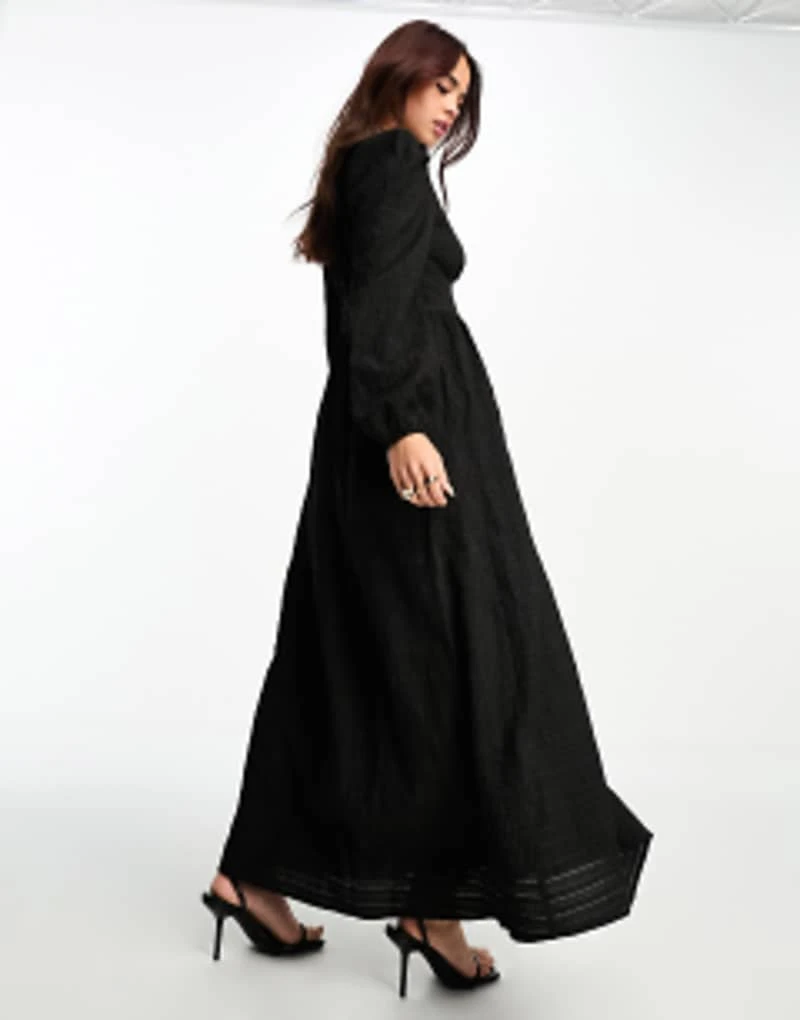 ASOS DESIGN Puff Sleeve Pleated Dobby Midi Dress With Scallop Trim In Forest Green
