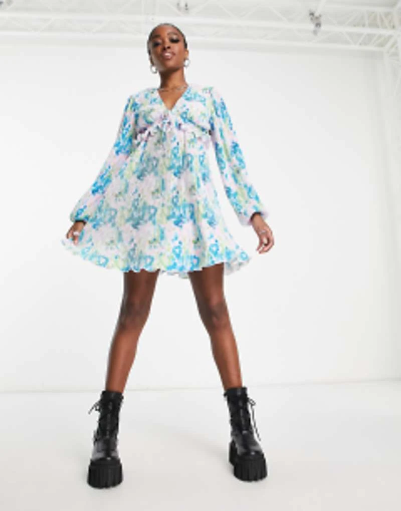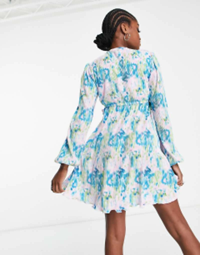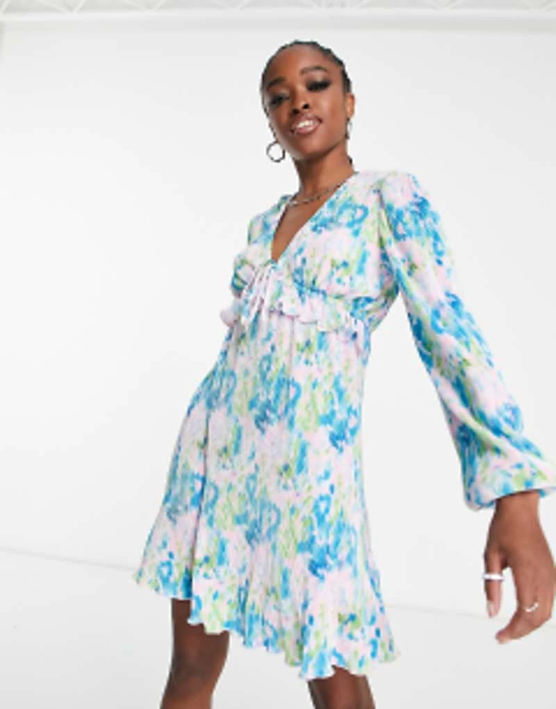 The Frolic Washed Floral Plisse Mini Ruffle Dress In Multi