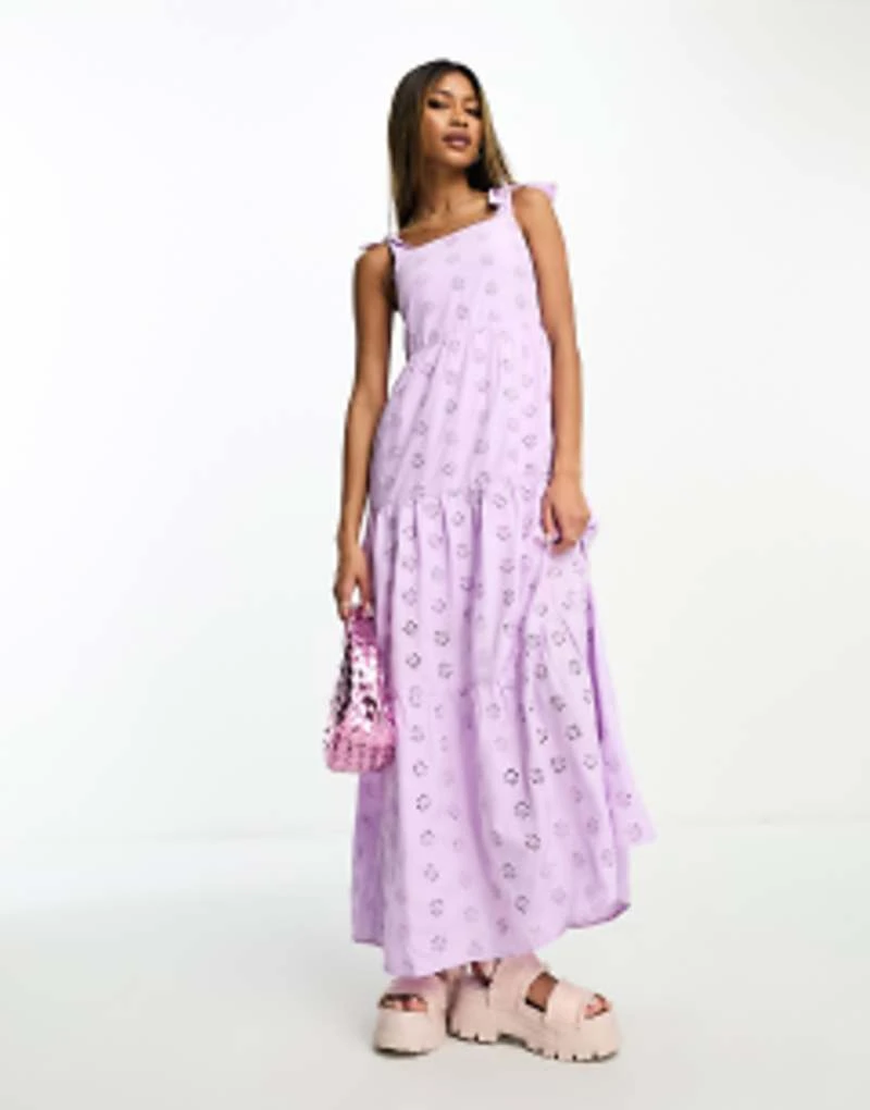 ASOS DESIGN Broderie And Knit Mix Strappy Midi Dress In Black