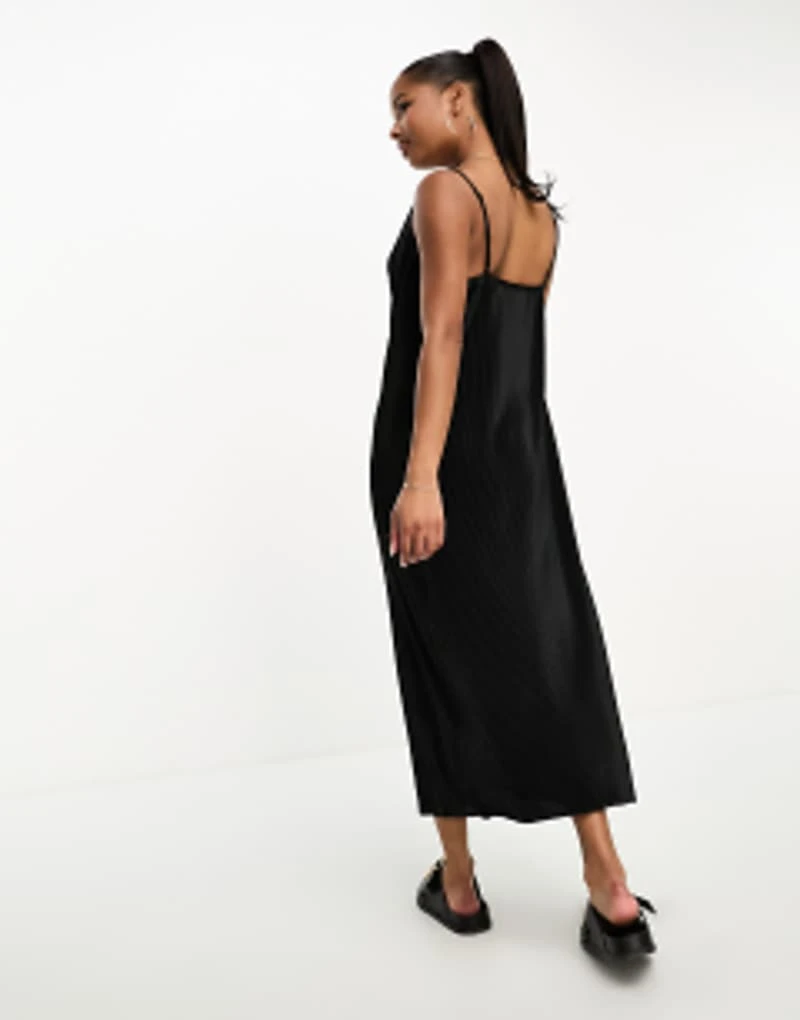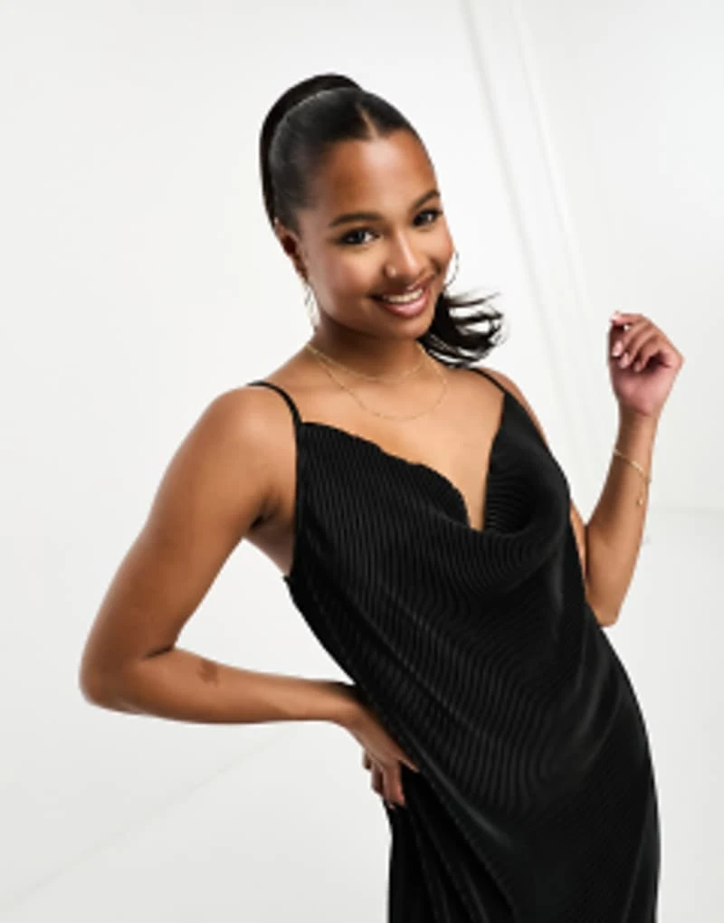 Threadbare Petite Cami Cowl Neck Plisse Maxi Dress In Black