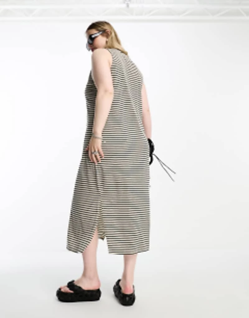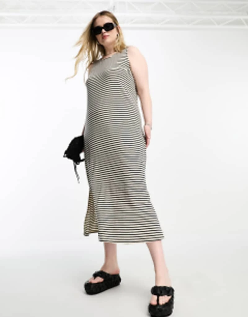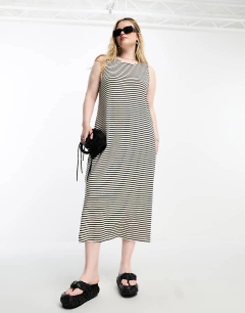 Vero Moda Curve Sleeveless Maxi Dress In Mono Stripe