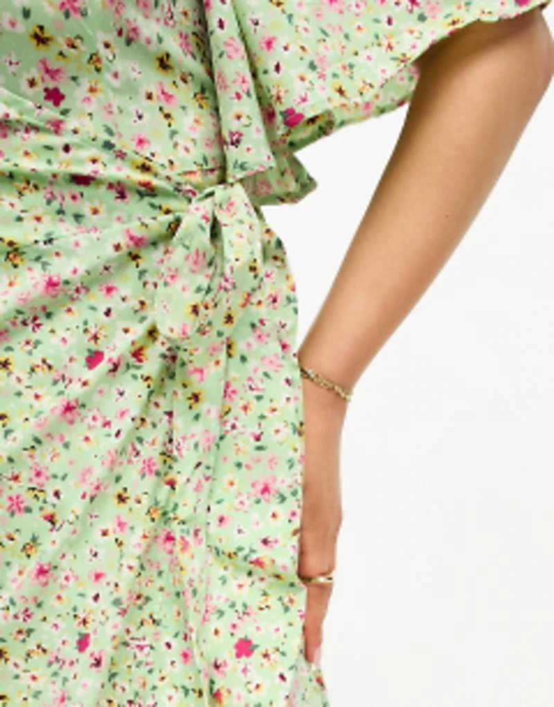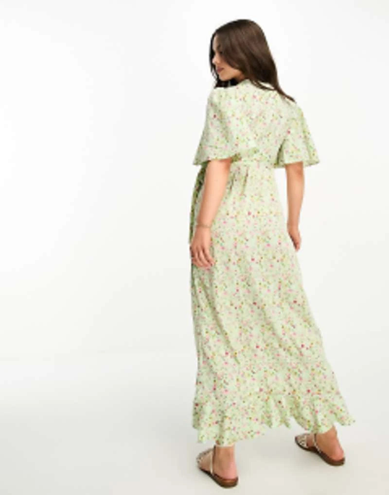 Vero Moda Petite Wrap Front Maxi Tea Dress In Green Floral