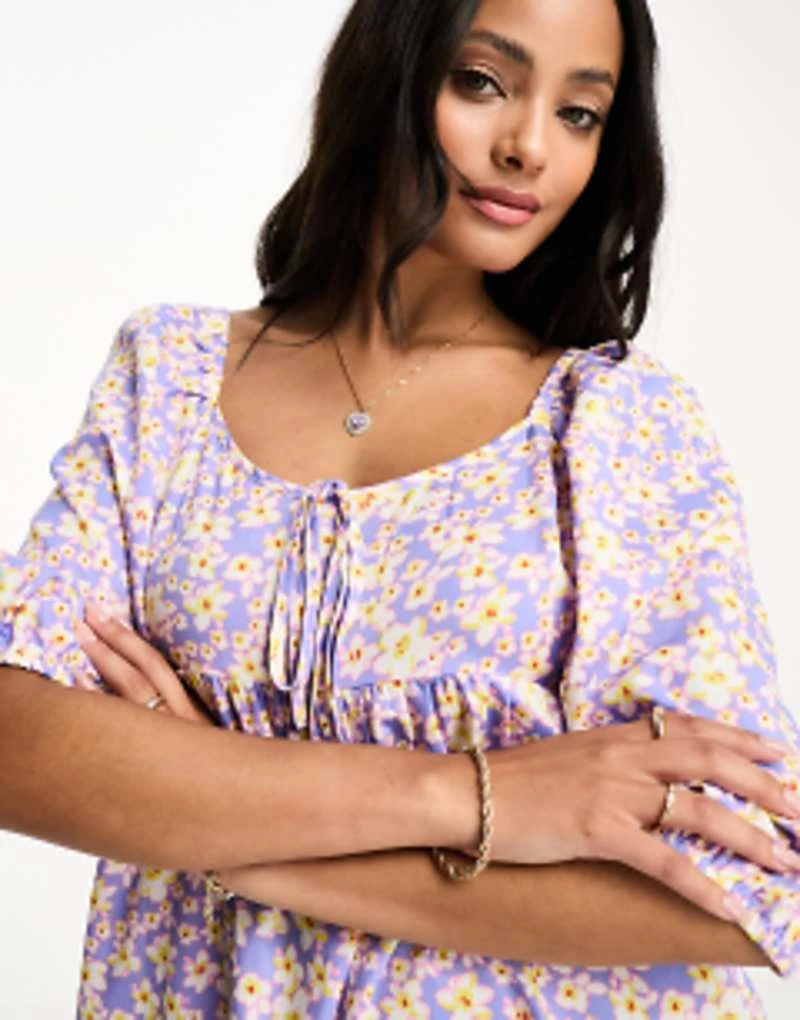 Wednesday’s Girl Puff Sleeve Floral Print Mini Dress In Lilac