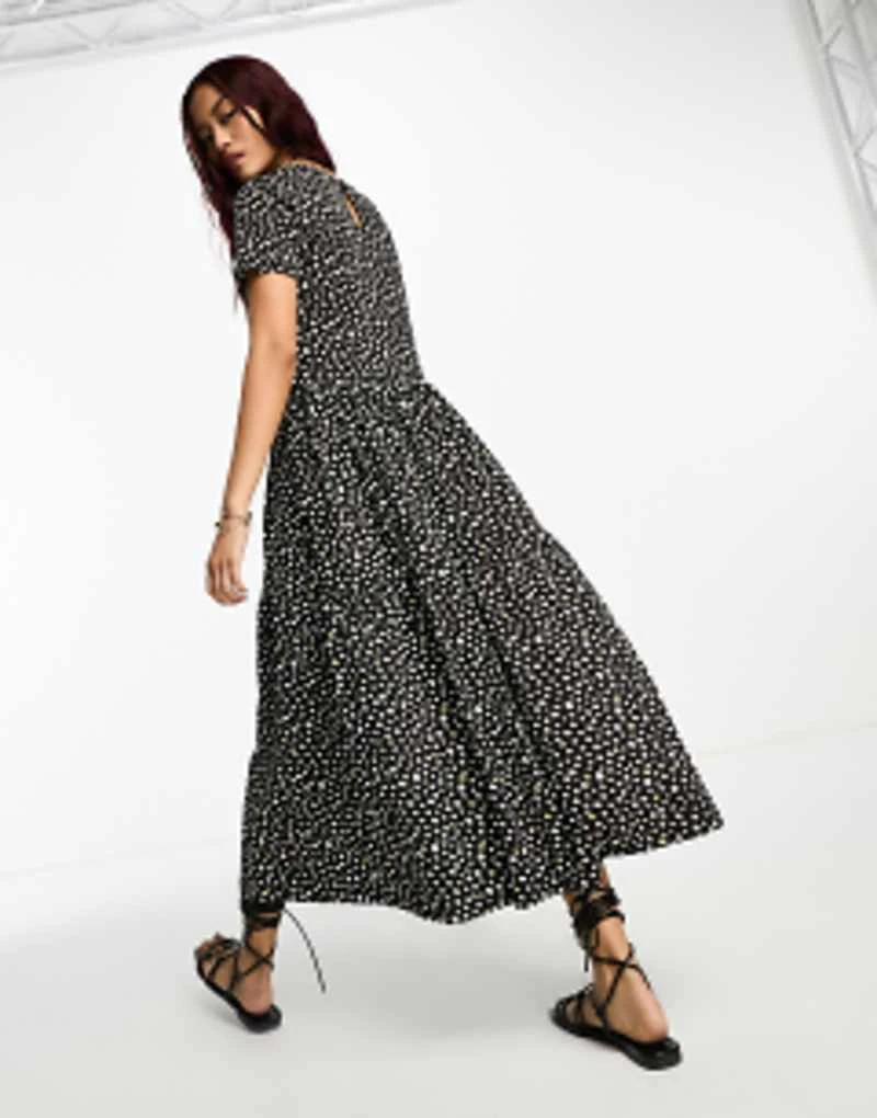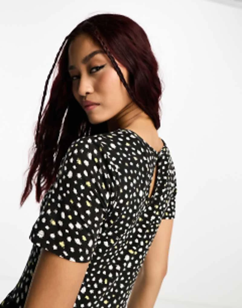 Miss Selfridge Long Sleeve Button Through Maxi Dress In Spot Print